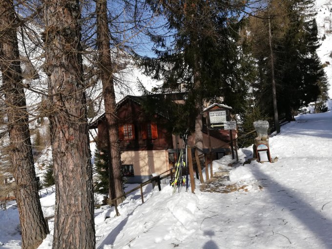 Но! Прогулка прогулкой, а режим питания нарушать нельзя! Да и вообще, на полный желудок гулять все ж приятней.. и мы побрели наугад в один из множества ресторанчиков , расположенных вокруг поляны,с которой стартуют на подъёмник счастливые лыжники( к коим я не принадлежу по причине серьезной травмы колена, полученной 6 лет назад  во время неудачного столкновения меня с машиной, почему то ехавшей по дороге именно в тот момент, когда эту дорогу я решила перебежать)..Но это опять лирическое отступление. В общем, я заказала pizzoccheri.Это такое интересное и вкусное блюдо, о котором, почему то , тут ещё ни разу не говорилось.В общем, это паста, приготовленная с гречневой мукой, перемешанная со шпинатом, отварной картошкой кусочками, заправленная сливочным маслом, и щедро посыпанная пармезаном. Это вкусно? Нет, это не вкусно, а оооочень вкусно, просто взрыв мозга!