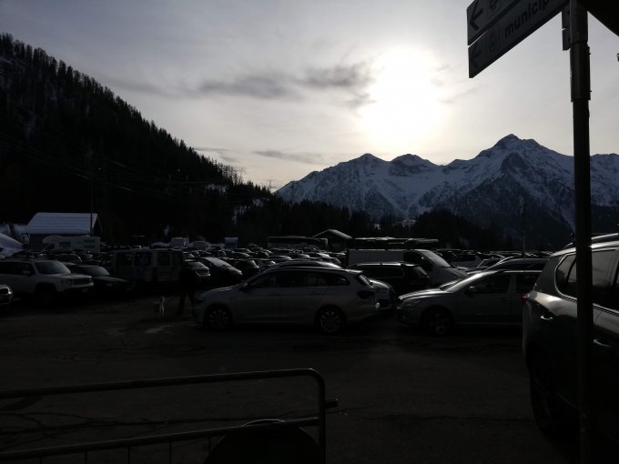 В горах темнеет очень рано. Раз! И солнце зашло. Два! И город погрузился во тьму.. дорога домой не близкая.. пора искать машину в этом автоокеане, и пока, Foppolo!