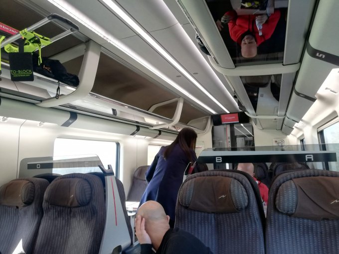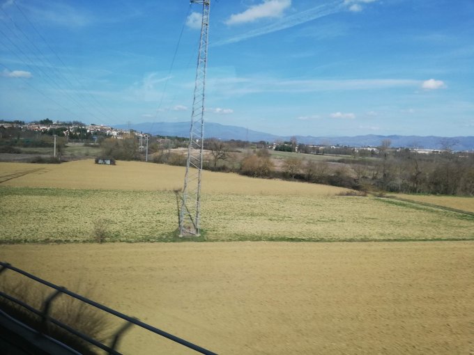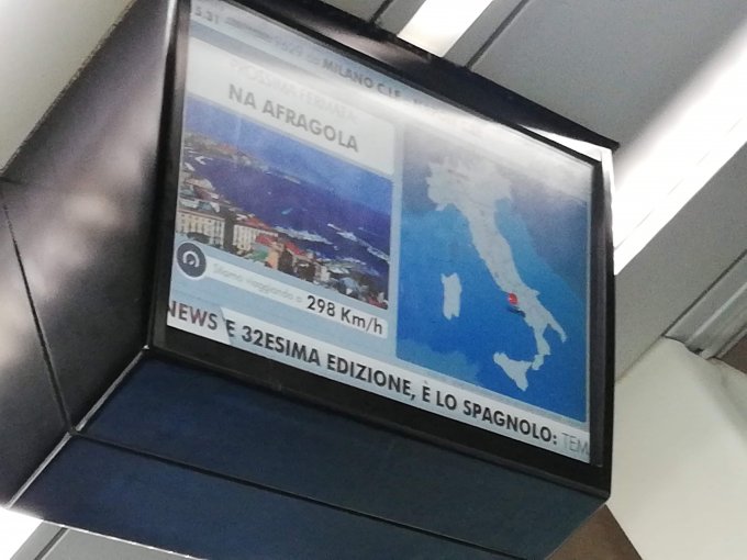 В пути этот поезд останавливался всего два раза, во Флоренции, и в Риме. На несколько минут. А скорость поезда в пути была около 300 км/час, что указывалось онлайн на экранах, развешанных повсеместно по вагону. Так же, как и показывался сам путь поезда.