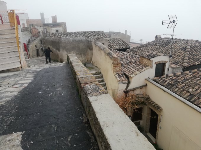 После ресторана мы поехали домой. Я толком не понимала, где мы находимся, но возникло стойкое ощущение, что мы едем по горам и по серпантину. И ещё. мы бросили на какой-то улице машину, потом шли куда то вверх по каким то лестницам и переулкам, и дверь в дом была прямо с дороги..правда, она такая узкая, что проехать можно было только на мотоцикле или велосипеде. Вот, представьте себе, открываете вы входную дверь , выходящую из зала, на улицу, и сбиваете дверью проезжающего мотоциклиста.. примерно так. Но это я увидела только на следующее утро. Когда проснулась одна в доме и вышла на улицу. Мне накануне сказали, что вернутся домой, как только смогут, чтобы менять «выгулять», но ждать я не стала, распахнула дверь( никого не сбила), вышла на улицу , накинув курточку и взяв с собой телефон, и закрыла за собой дверь... Слава богу, что я накинула курточку и взяла телефон!! Понимаете, почему? Дверь я захлопнула, ключей не имела... дверь мне больше не открылась. Я осталась на улице в незнакомом месте без денег. Были бы деньги, я бы пошла в бар завтракать, имея телефон хорошо бы провела там время в интернете... но судьба мне сказала, иди и гуляй! Что я и сделала. Правда, далеко от двери в дом я не отходила, боясь заблудиться, что легко можно было сделать с моими способностями...зато сделала много фотографий. Конечно, фотографии не передают всего того великолепия, которое мне посчастливилось наблюдать. Представьте гору. По спиралям разного направления на ней положены дороги. В стенах, противоположных от обрыва, выдолблены в скалах дома!!! Зачастую это просто одна огромная комната, служащая и кухней, и залом, есть лестница наверх, где находится повисшая комната, служащая спальней, и внизу часть комнаты отделена и переоборудована под ванную с туалетом. В таком гостевом домике я и находилась. Рядом с такой дверью в дом находятся много других дверей. Это чужие дома. Входы в них. Сама дорога , что перед домом, это крыша жилищ внизу. А крыша твоего дома это дорога вверху.. плюс сложная и запутанная система соединений улиц, переулков и тупиков проездами, тропинками, дорожками и лестницами. В общем, если ты тут не живешь, то заблудиться- плёвое дело! Теперь понимаете, почему я боялась уйти далеко от моего жилища? Хорошо, что был просто густой туман, а не дождь и не снег.. ну, а теперь фотографии.. всего того, что я вам рассказала об этом удивительном месте..