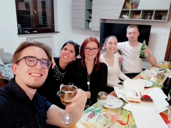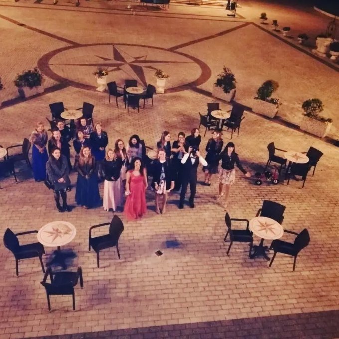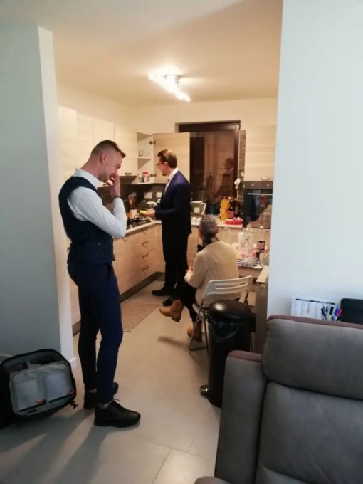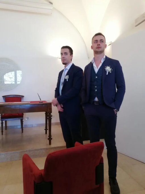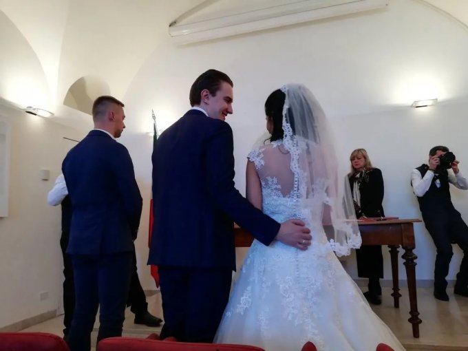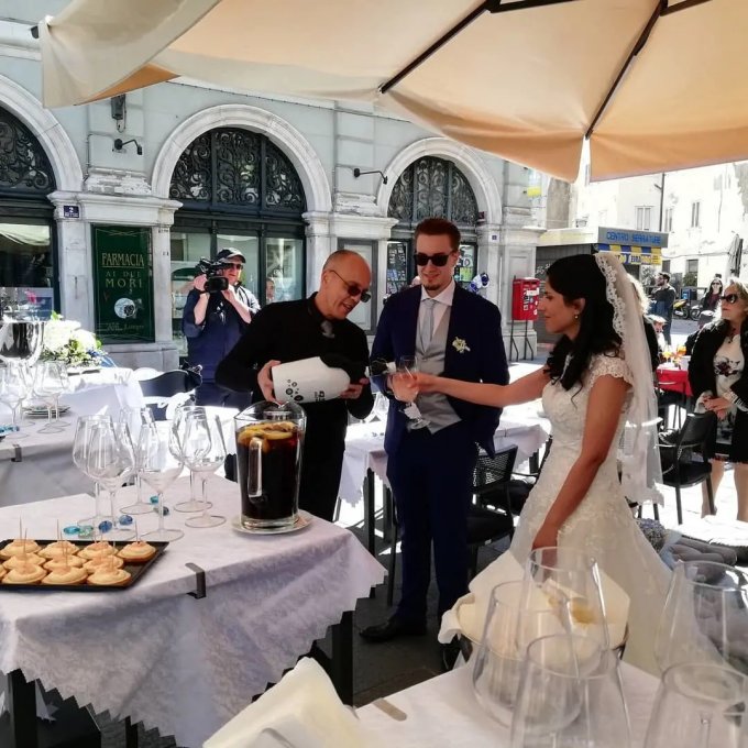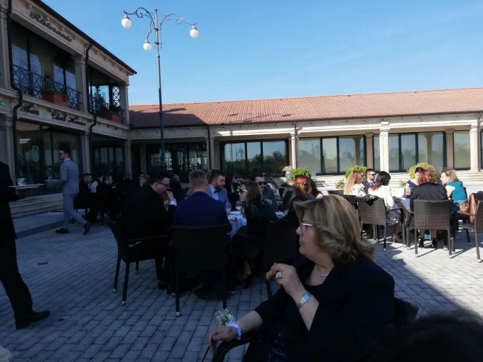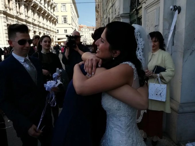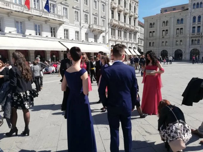 Ну а потом нам сказали пора, и мы поехали в центр Триеста, где в белом доме на центральной площади должна была пройти регистрация брака. Небольшим составом мы выдвинулись на 2 машинах. Первое, что сделали по прибытию, это сели в баре , чтобы расслабиться и выпить аперитив.
