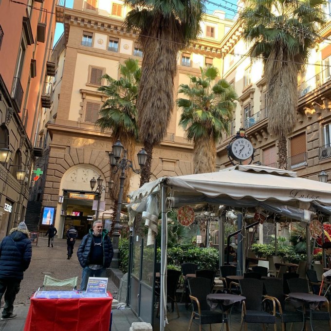 Началось с того, что мы с подругой ещё в декабре одновременно заговорили, что неплохо бы смотаться в Неаполь. Сказано-сделано. Подруга оперативно нашла совсем недорогие ( 15 евро за билет на самолёт в оба конца)билеты, частный отель в центре, и ранено утром мы вылетели в Неаполь. Чуть больше часа в пути, 15 минут на автобусе, и вот мы завтракаем на главной площади Неаполя замечательные «Риччи» с капучино..