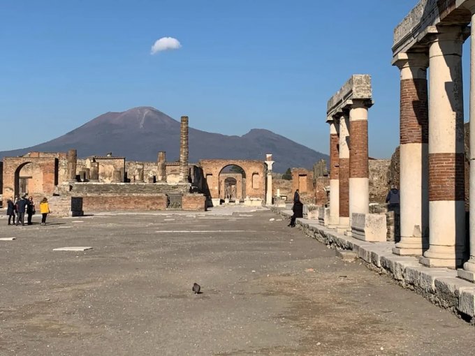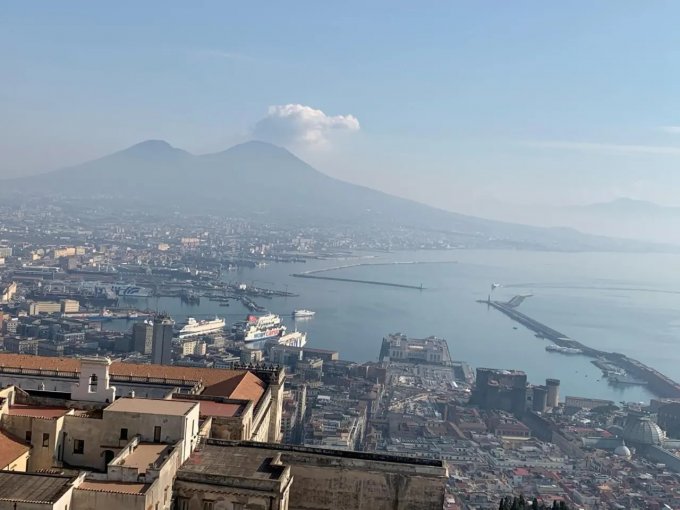 Поднялись на 2 разных замка, откуда был прекрасно виден везувий(как, впрочем, и из Помпеи), с его неизменным облачком над кратером(Везувий-действующий вулкан, и из него всегда выходят газы, которые формируют облако. Это облачко хорошо заметно и на фотографии из Помпеи, чуть выше, там тоже попал Везувий в кадр)