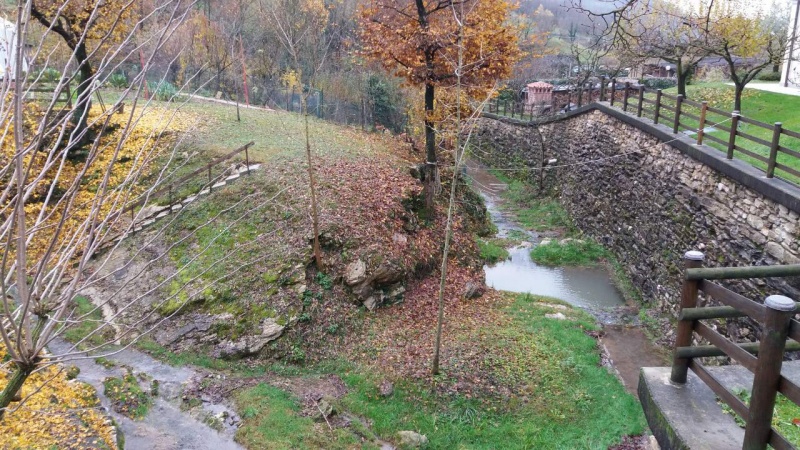 тронутой гнилью опавшей листвы, осеннего дождика, ручейка,