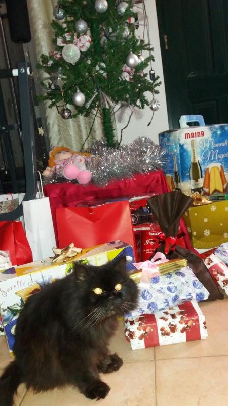 ....И чем я не подарок??(Мой кот постоянно сидит под елочкой,