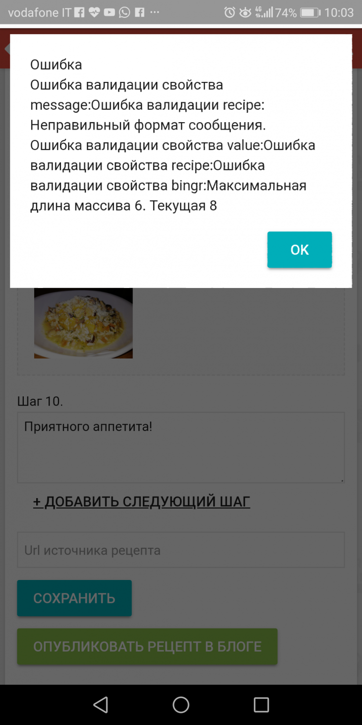 но опубликовать не смогла, выдает ошибку. Что это за ошибка, с чем