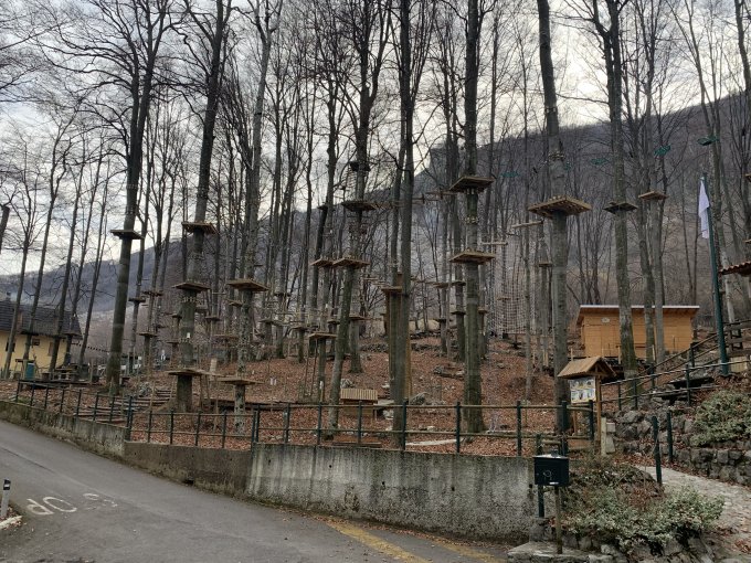 А это парк развлечений, где дети и взрослые переходят от дерева к