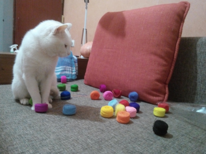 А мой сам трудится, ниточки сортирует.