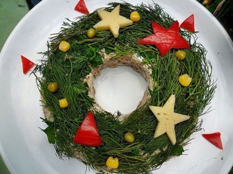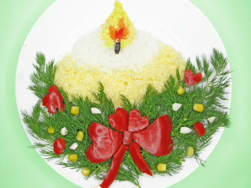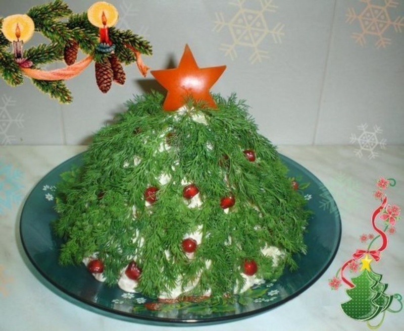 Новогоднее украшение салатов