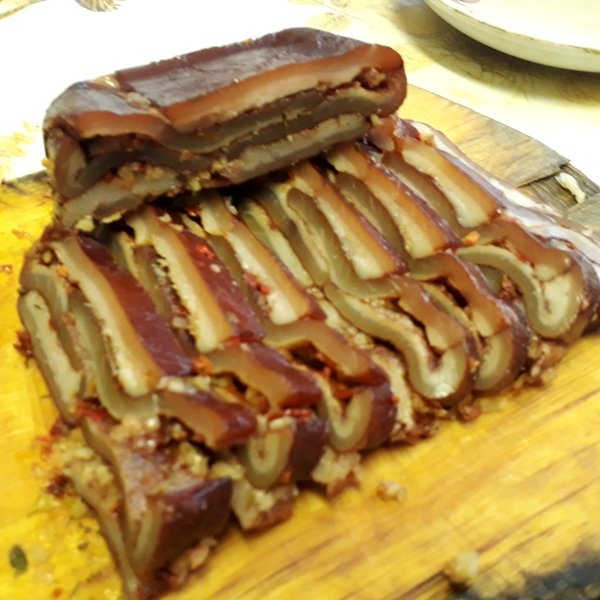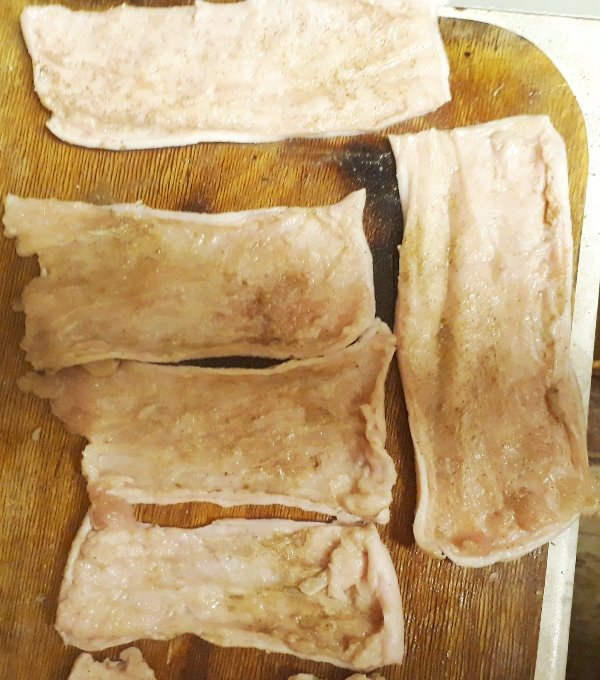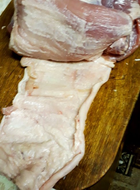 срезать сало(его перетопить на будущее), разрезать на ленточки