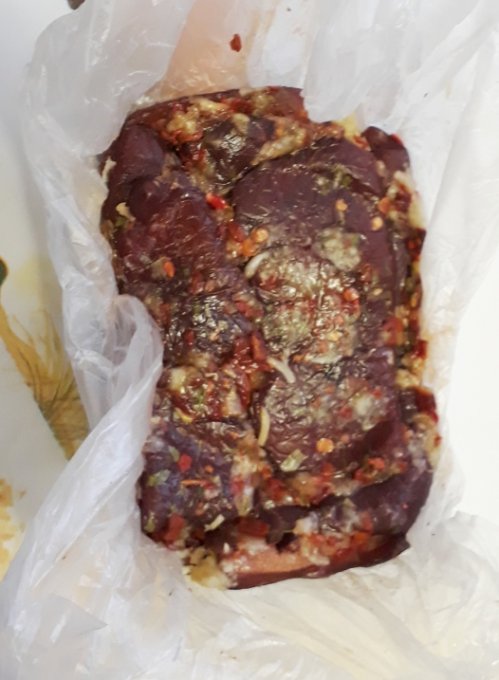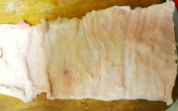 Отделите шкурку от мякоти, излишки сала срежьте(они Вам