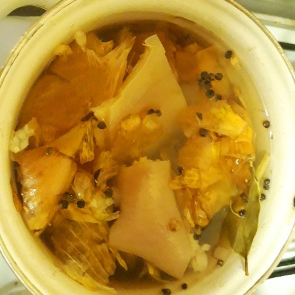 Пропускаю 1 шаг- шкурки залейте холодной водой закипятите и слейте