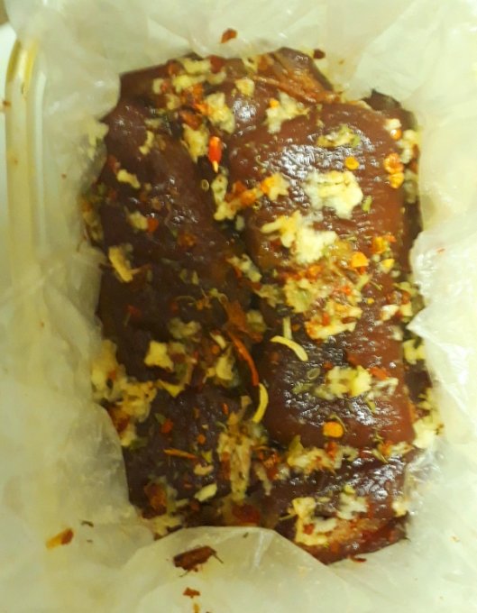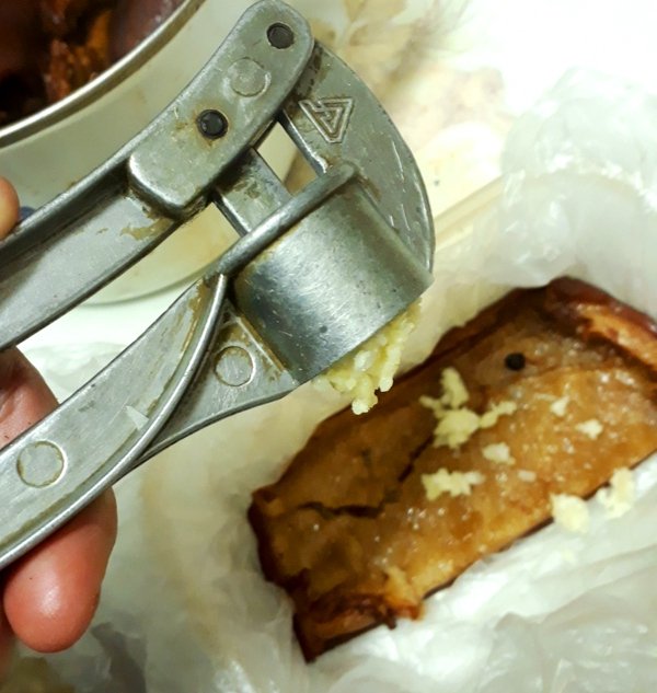 разрезанный чеснок, завернуть рулетиком, завязать нитками и просто