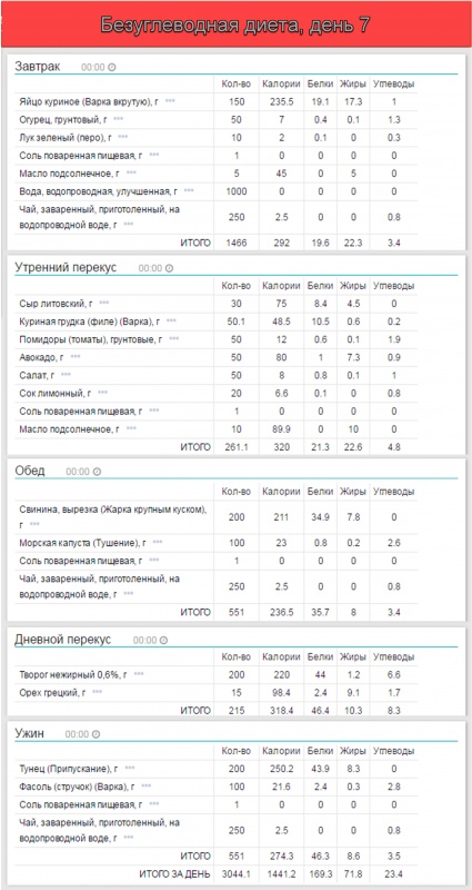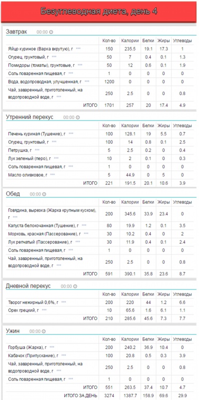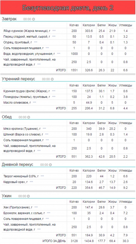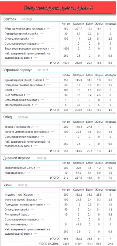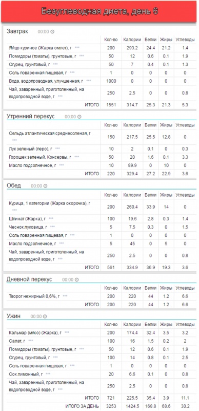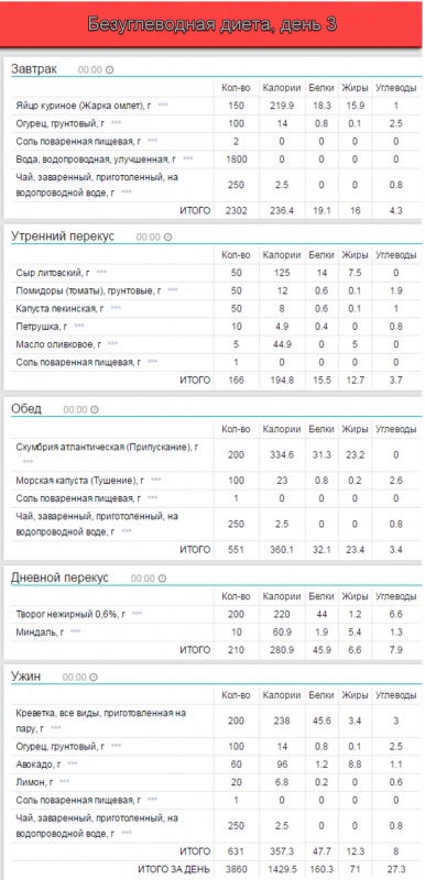• 20-30 грамм углеводов в день, получаемых, преимущественно, в виде зеленых овощей.