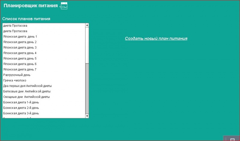 в планировщик я забиваю для тестирования разные "модные" диеты,