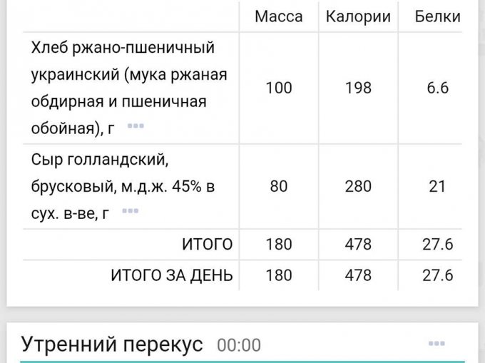 | Творог 5% жирности | 100 г |