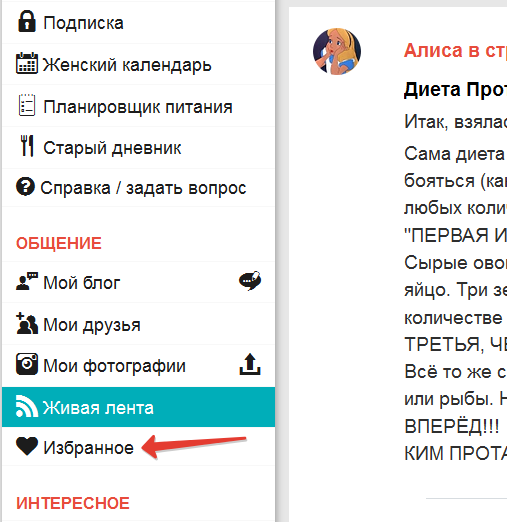 которые сохранила в избранное. Справа в колонке есть избранное
