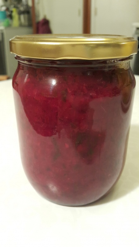4.  Раскладывать в стерилизованные банки, кипящую  свеклу. Закрыть стерилизованными крышками.
