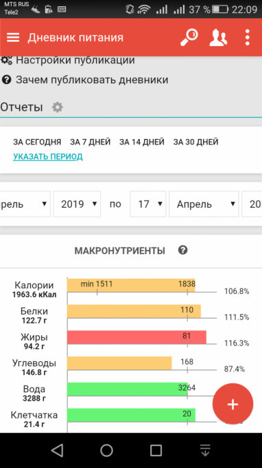 питания за этот период. Если хотя бы один дневник не заполнен, то