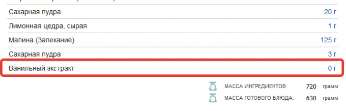 массу готового блюда. Вы можете создать свои ингредиенты (пока не