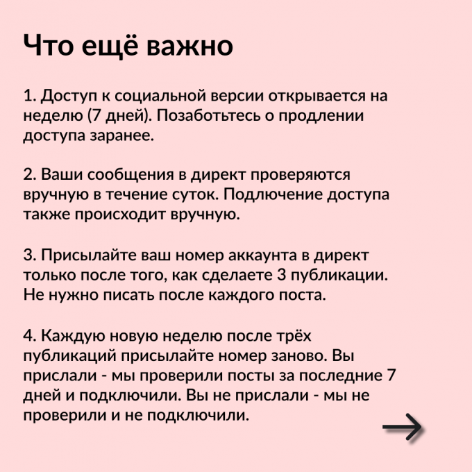 1. Чтобы получить доступ к соц.версии на неделю, нужно опубликовать