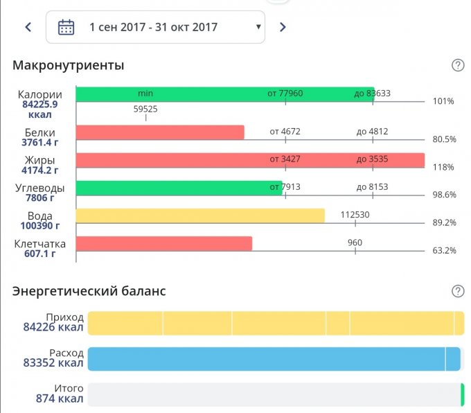 хранит настройки и нормы в каждый из дней ведения дневника. Поэтому