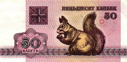 , Ну, в р. Беларусь раньше валюта такая была. Зайчики там всякие нарисованы, белки. Ща, вроде, другая валюта. Или нолики пообрезали, ну как у нас с мильенами было.