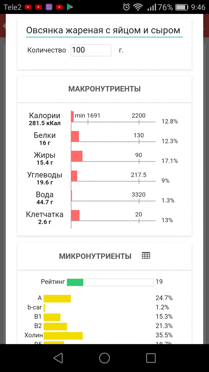 | Кол-во | Калории | Белки | Жиры | Углеводы | |