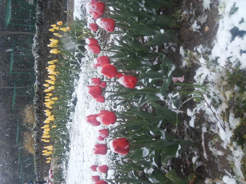 Уникальные снимки, тюльпаны в снегу. У меня на ту пору ещё не