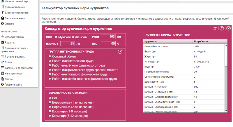 | Итого за день | 2505 | 1234.7 | 57.4 | 53.5 | 129.3 |