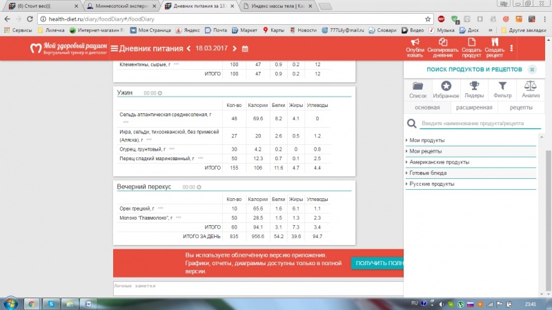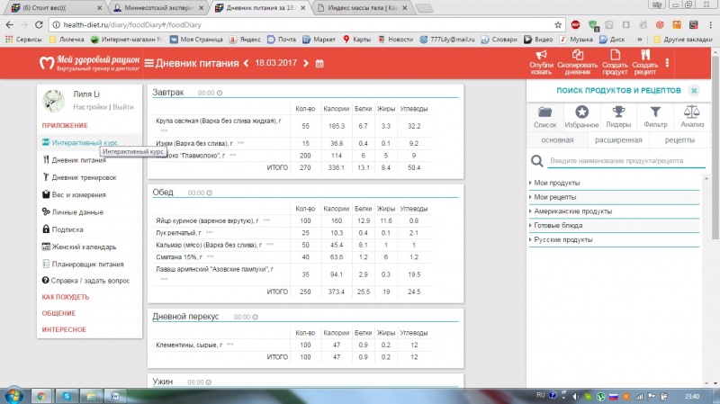 "Стройная фигура за 30" и правильно питаюсь. За день получается