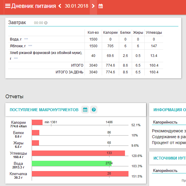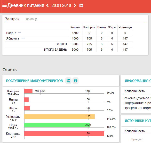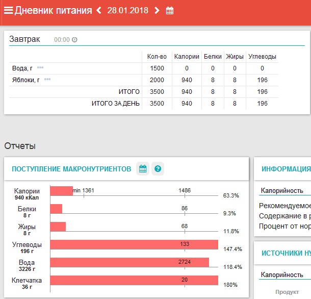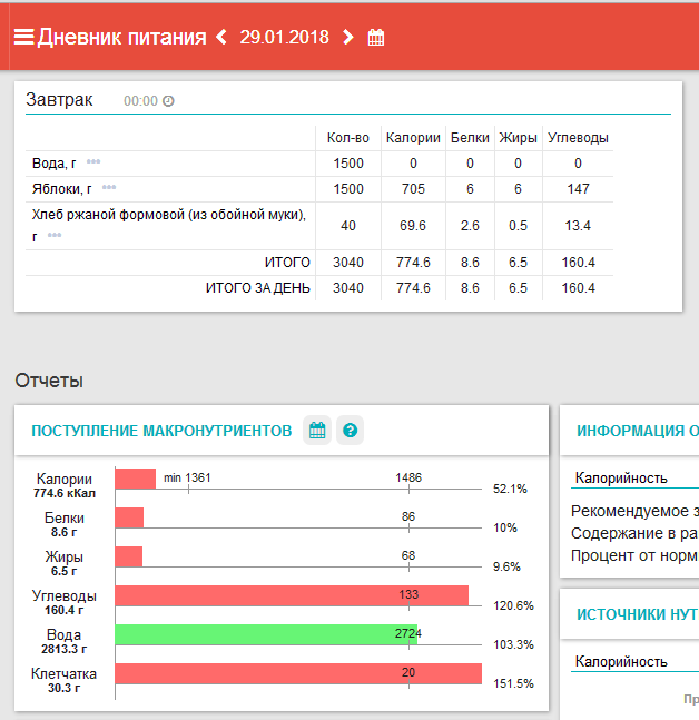 Зато потребность в углеводах покрыта на 114%. Следовательно,