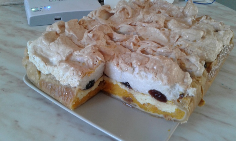 пирогу , сверху взбитые белки (мне нравится что-то неровное на