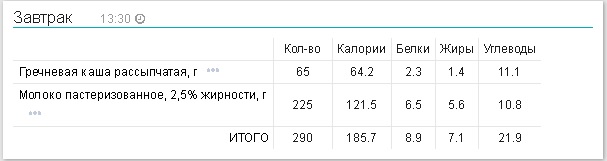 Вот к примеру в дневник занесла кашу в сухом варианте и добавила