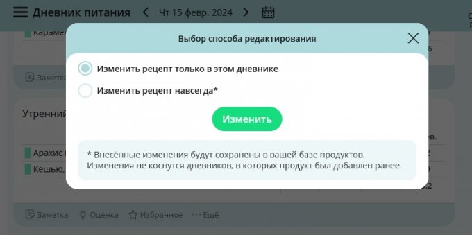 района или изменить сам рецепт. Сейчас такой кнопки нет.