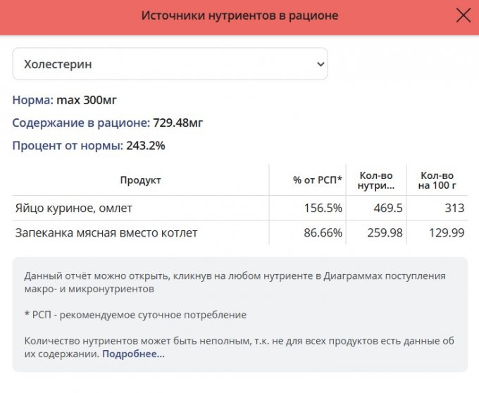 Галочку поставила. Оказалось, что холестерина я съедаю 300-400%. И