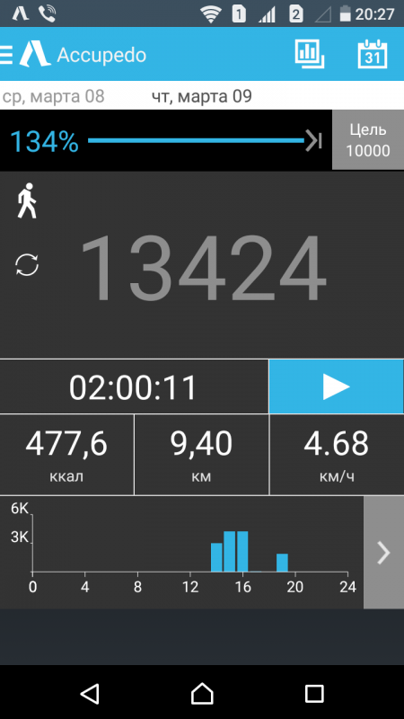 вы нагуляли 9,4 км, в дневнике указали 2 часа - 12 км, поменяйте на 94 минуты, так будет верно