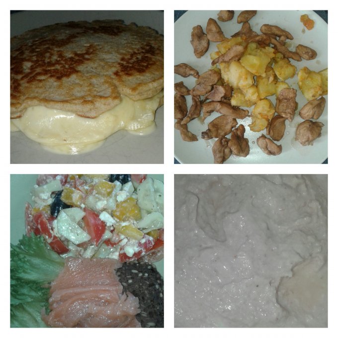 Рациончик мой. Очень удобно - пачка творога взбивается с протеином и водой. И небольшими глотками выпивается. Говорят, если добавить льняного масла - вообще лекарством становится :) А пасту арахисовую ела в несколько приёмов.