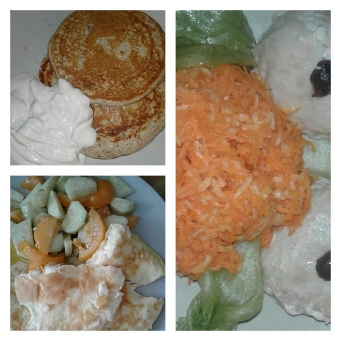 Моё вчерашнее меню с учётом рекомендаций тренера. Я под его (дистанционным) контролем весной сбросила за полтора-два месяца 5 кг (из которых два наела обратно, когда пошла в "самостоятельное плавание"). А рекомендовал он на настоящий момент 55гр жиров, 120-150гр углеводов (здесь "УРА", потому как без них я всегда голодная), ну и белков не меньше 100 гр. Воду, чаи и кофе, а также всякие БАДы и витамины вносить лень, поэтому только то, что имеет КБЖУ