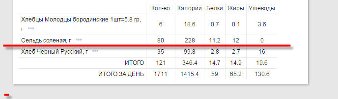 | Итого за день | 2596 | 1757.4 | 92.4 | 77.8 | 154 |
