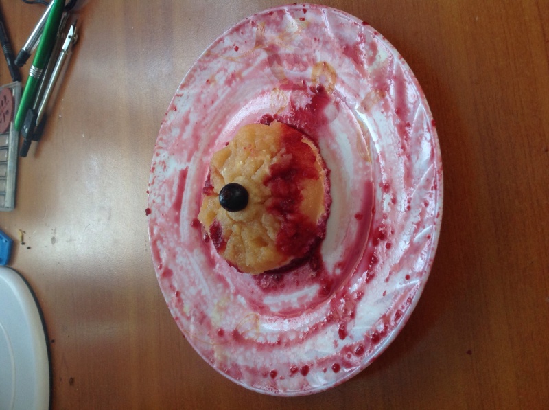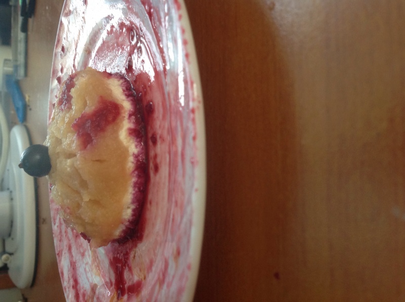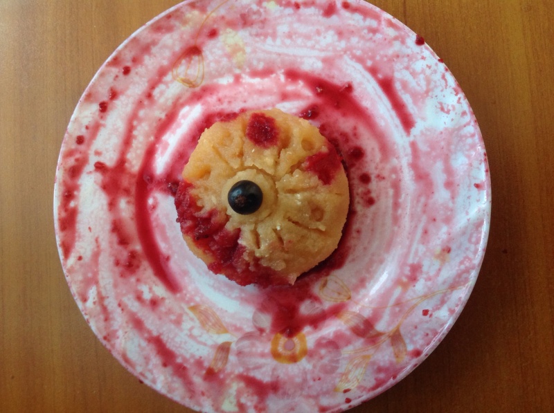 знаю) вынула вырезала круги и полила смородиновым соком.