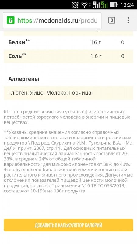 белок? Как пример очень удивила картошка фри, оказывается в маке у