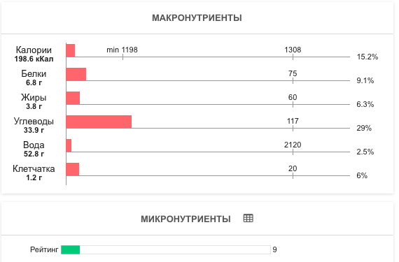 | Калории | 110.3 кКал | 6.55% | |