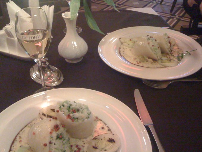 Кальмары с начинкой. Рис интересно сварен, рыхлый, не липкий, как