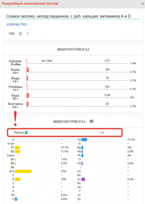 Если раскрыть химстостав там будет рейтинг на 100 гр