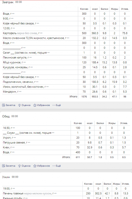 множество "дневников питания", я заметила, что никто не отмечает
