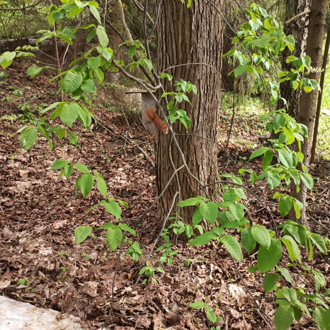 зарастает, до нее всё руки не доходят. Белочки прибегали, в паре