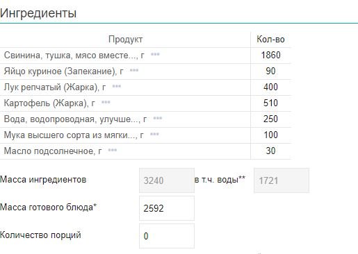 | Свинина, тушка, мясо вместе с жиром, сырая | 1860 г |