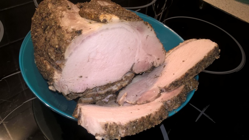 1. Корейку 2 кг вымыть, обсушить, натереть солью и специями,