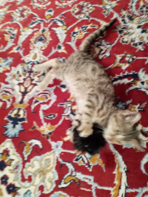 Котик возрадовался пушку. Ходит в туалет на улицу, но я очень бдю, так как по моей вине все-таки была подмочена репутация, а один раз даже перевернул мешок с шерстью и бережно прикрыл свои писюльки, слава богу шерсть не разобранная и это все не на ковре. Котик весит 900 грамм. И уже возмужал. А вообще удивительно, как на одних инстинктах так можно гармонично существовать с начальничком пищевой цепочки и вызывать такие нежные чувства. Сегодня видели двухдневного бычка. Точно говорят, что дети пахнут богом.